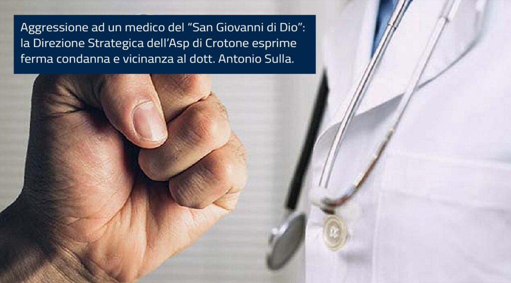 Aggressione ad un medico del “San Giovanni di Dio”: la Direzione Strategica dell’Asp di Crotone esprime ferma condanna e vicinanza al dott. Antonio Sulla.