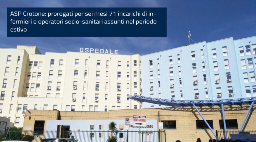 ASP Crotone: prorogati per sei mesi 71 incarichi di infermieri e operatori socio-sanitari assunti nel periodo estivo